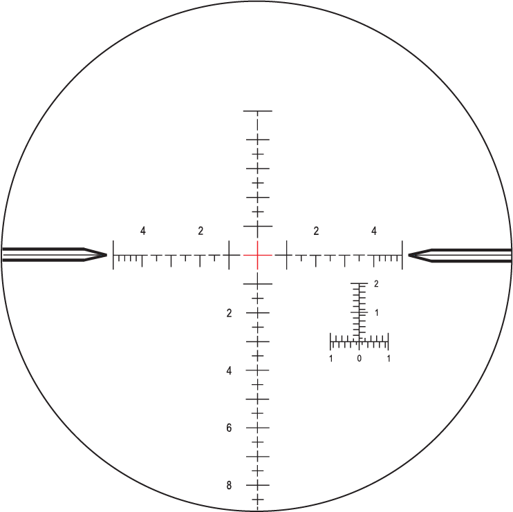 | 点击值 | .250 MOA 或 .1 MRAD |